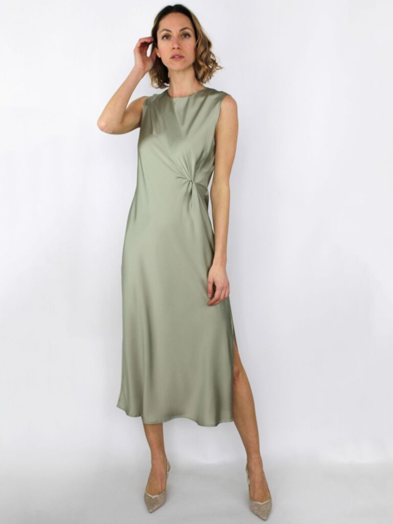 Abito morbido effetto raso con nodo e spacco laterale.
