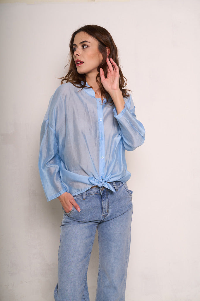 Camicia con maniche ampie e colletto alla corena. Trasparente.