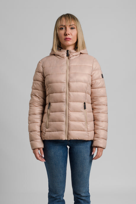 Giacca donna imbottita con cappuccio e tasche con zip