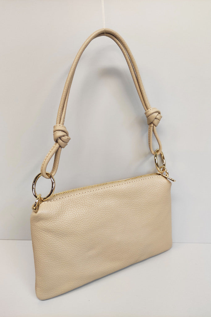 Borsa a mano in vera pelle martellata, perfetta per accompagnarti con stile in ogni occasione. Il design compatto ma capiente la rende ideale per l’uso quotidiano, mentre i dettagli in metallo dorato aggiungono un tocco sofisticato. Il manico doppio con nodo decorativo dona carattere e un’allure contemporanea, perfetta per look casual chic o più raffinati.