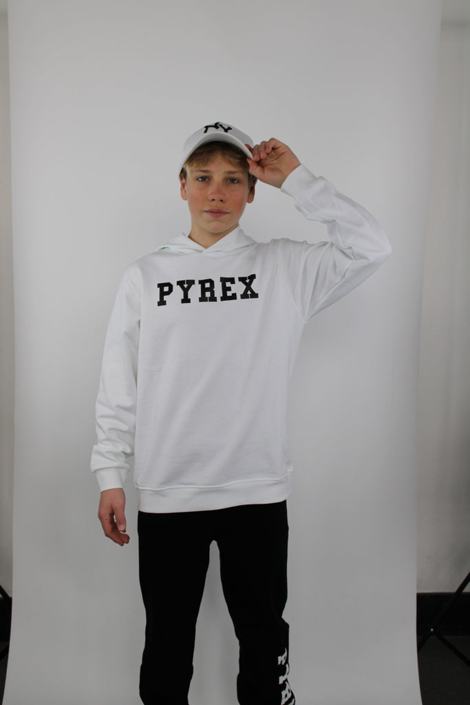 Felpa da bambino della PIREX con cappuccio, unica scritta frontale sul petto "PIREX"