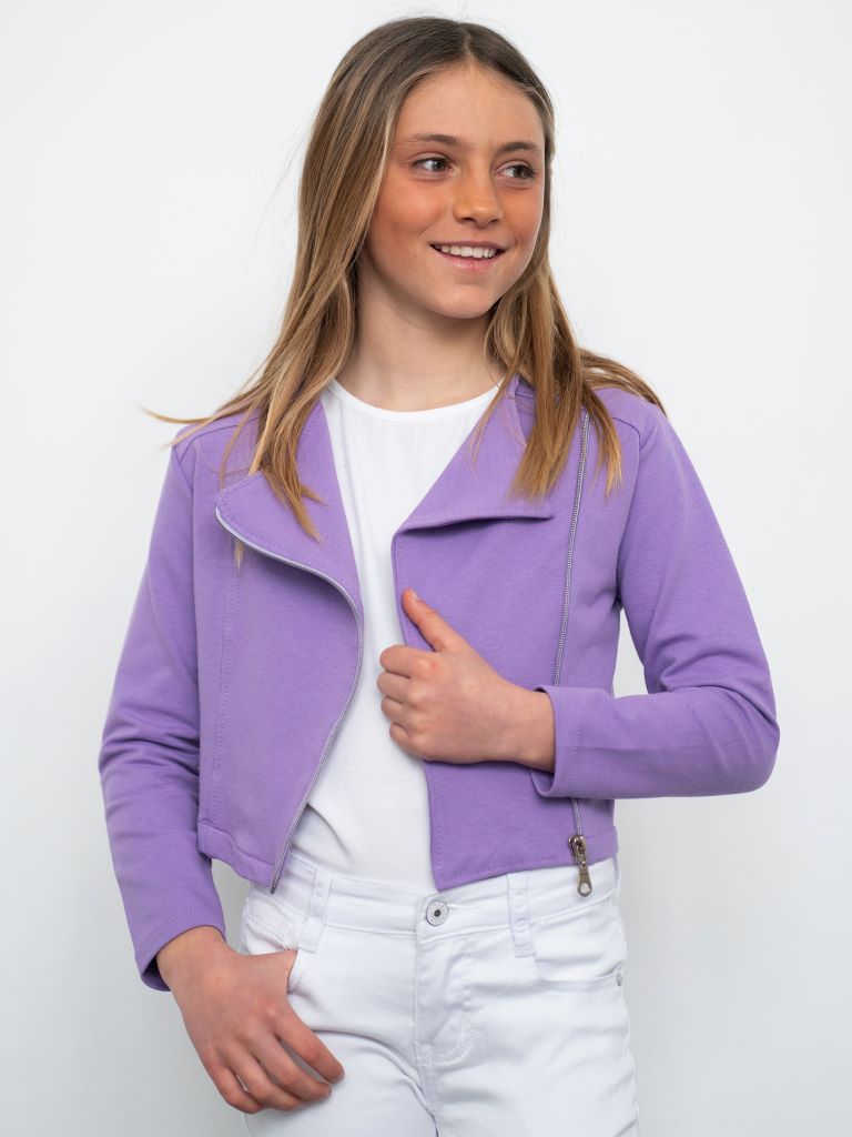 Chiodo cropped in felpa. Chiusura zip laterale con reverse