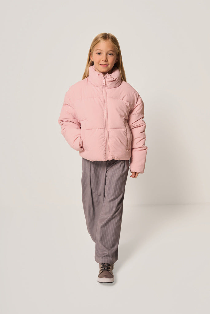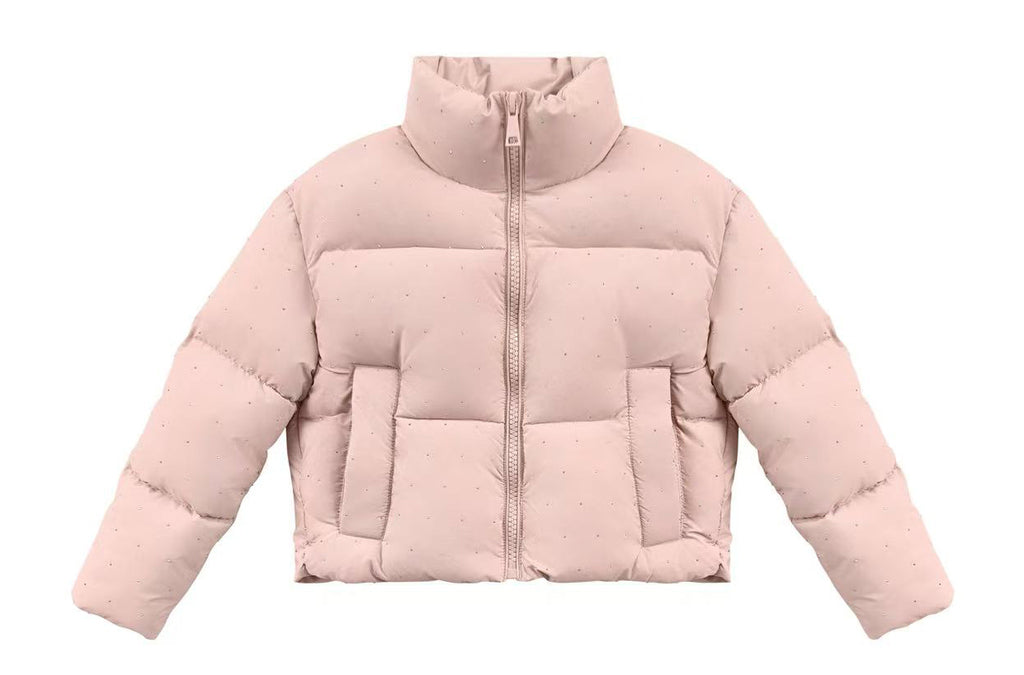 DESCRIZIONE: Giacca imbottita da bambina con collo alto, chiusura a zip e pratiche tasche laterali. Il modello è impreziosito da delicati strass che donano luminosità e da cuciture orizzontali che ne definiscono la trapuntatura. CODICE PRODOTTO: 260324