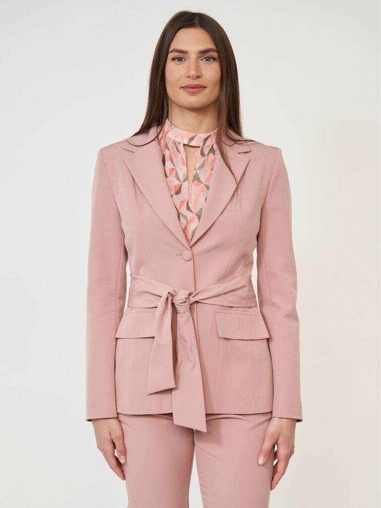Giacca foderata, chiusura 2 bottoni con cintura vita in tessuto, tasche a pattina.