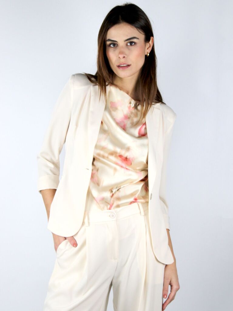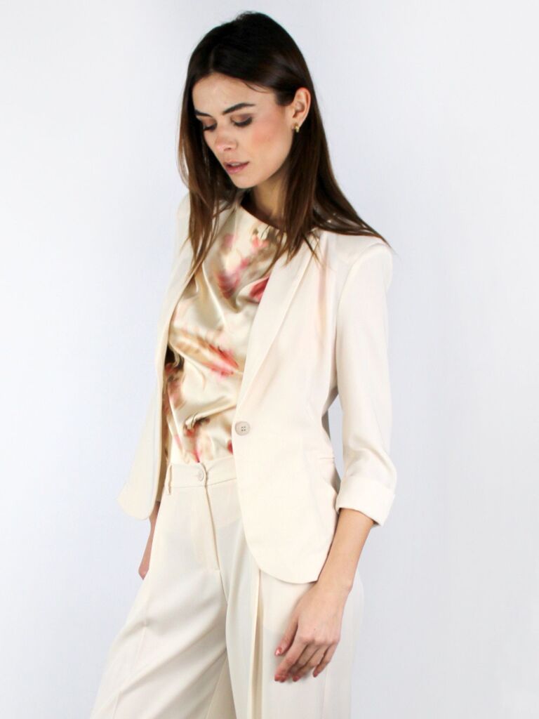 giacca in tessuto fluido,chiusura con un bottone e tasche a filetto