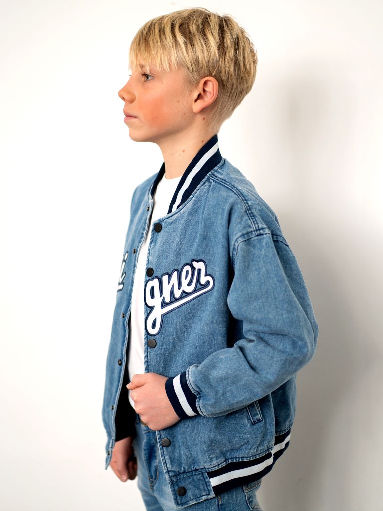 DESCRIZIONE Bomber con collo rotondo e maniche lunghe con polsino. Chiusura frontale con bottoni a pressione. Applicazione di toppa in spugna e motivi ricamati sulla parte anteriore Codice prodotto: 243439