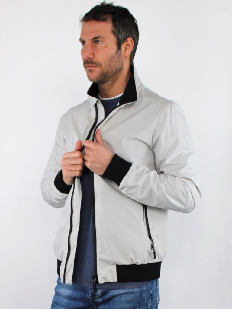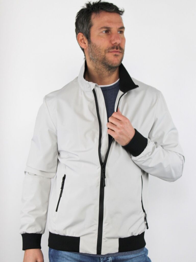 Giubbotto tecnico con zip,tasche oblique e polsini in contrasto nero