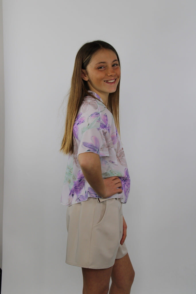 Pantaloncino da bambina con pieghe e 2 tasche. Cintura compresa.