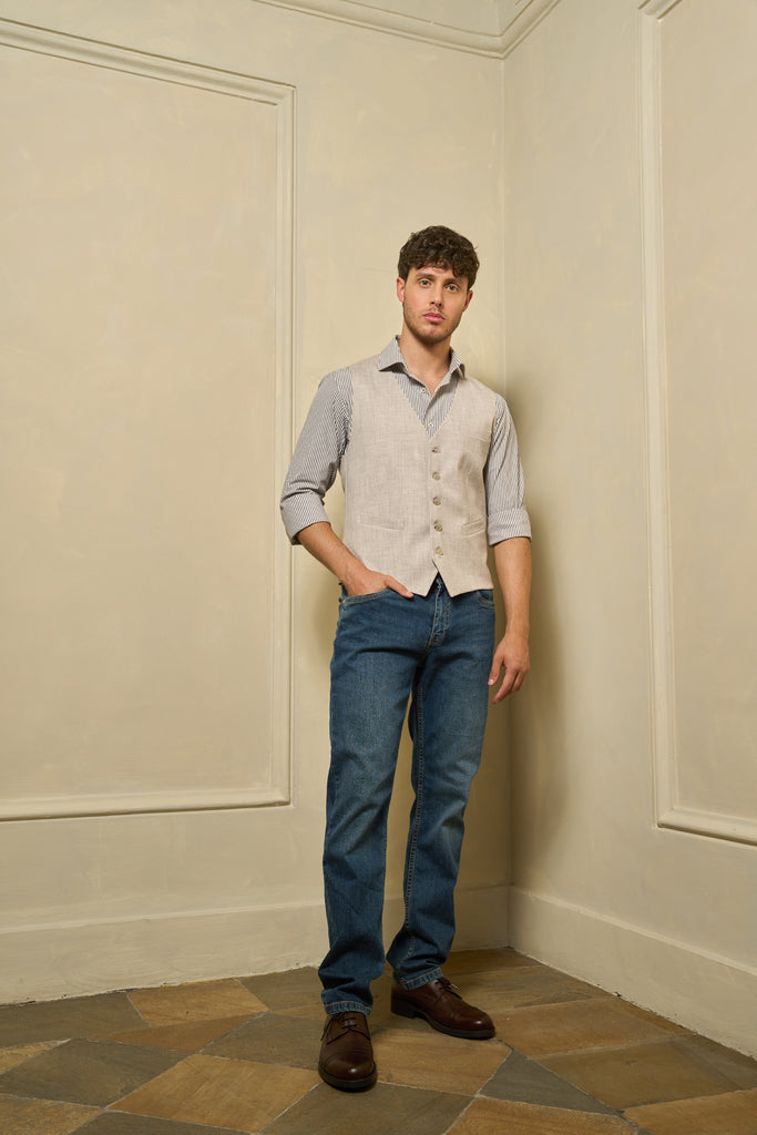 DESCRIZIONE: Jeans uomo in denim dalla vestibilità dritta e confortevole. Modello classico a cinque tasche con chiusura a bottone e zip, ideale per un utilizzo quotidiano. CODICE PRODOTTO: 260697