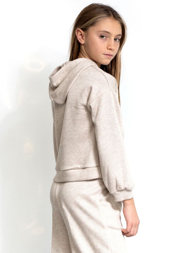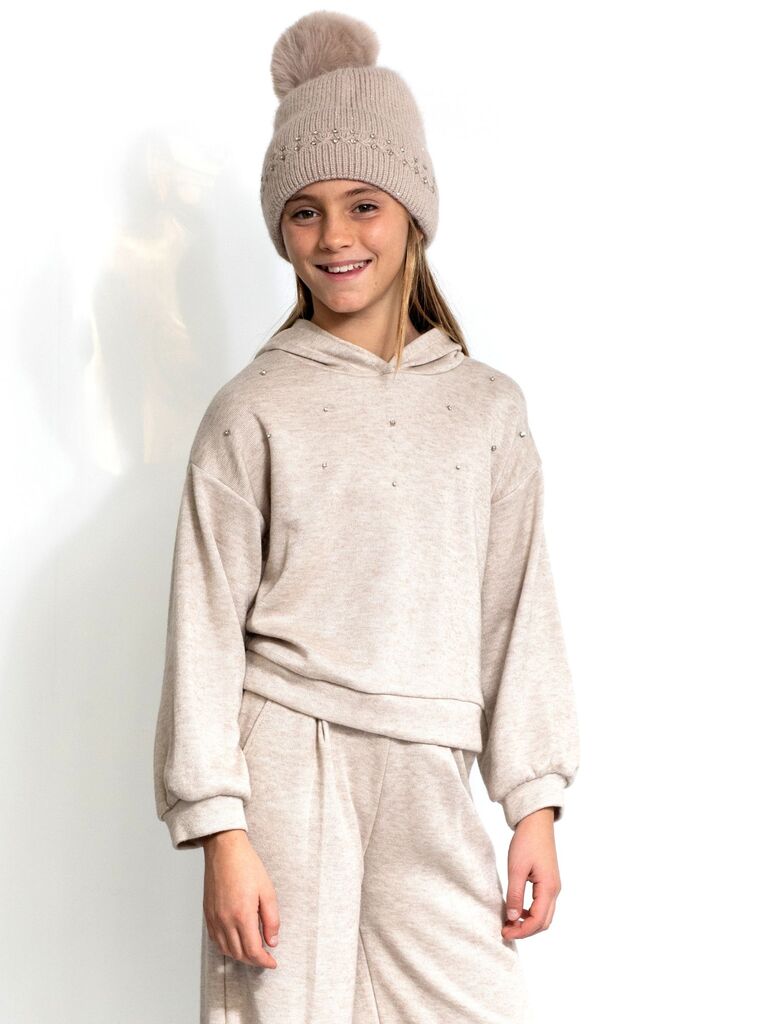 Felpa con cappuccio e strass applicati. Cuciture profili