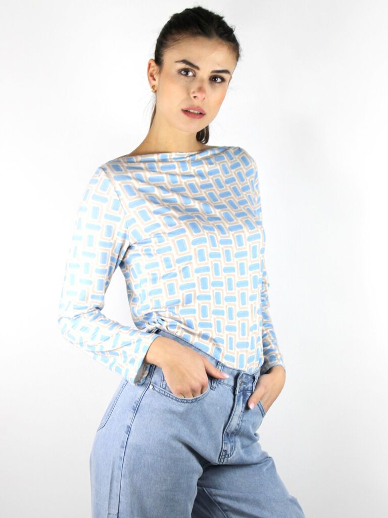 Maglia a maniche lunghe con scollo a barca e fantasia geometrica