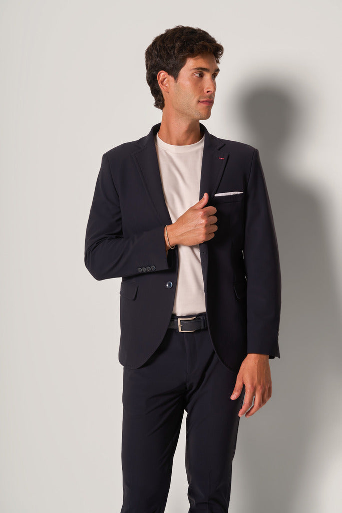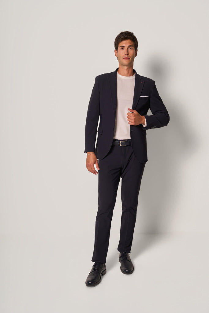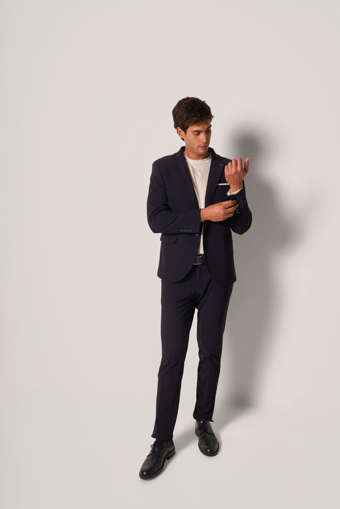 Abito da uomo dal taglio moderno e raffinato, composto da giacca monopetto e pantalone coordinato. Realizzato in tessuto elasticizzato, garantisce comfort, traspirabilità e una vestibilità impeccabile per tutta la giornata.