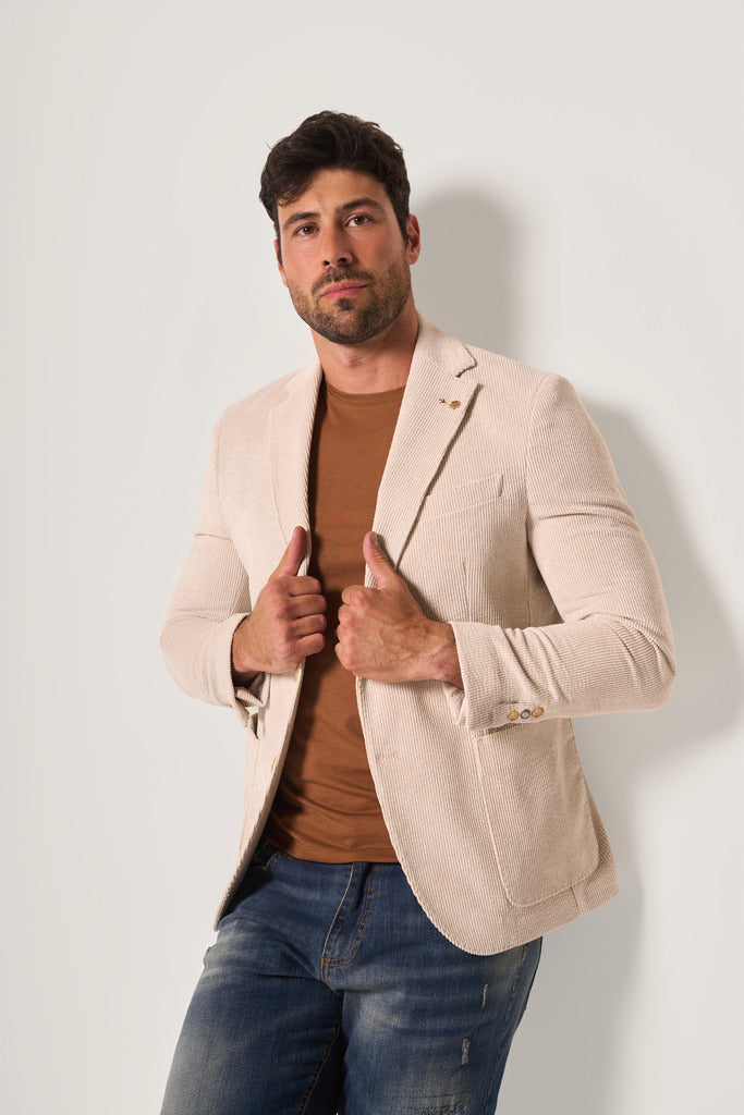 La giacca in velluto unisce eleganza e comfort in un capo dallo stile contemporaneo e raffinato. Realizzata in velluto millerighe di cotone stretch, offre una sensazione morbida al tatto e una vestibilità confortevole, ideale per chi desidera un look curato ma disinvolto.Il design con revers classico, chiusura a due bottoni e tasche applicate richiama la tradizione sartoriale italiana, perfetta sia per look casual con jeans che per outfit più eleganti.