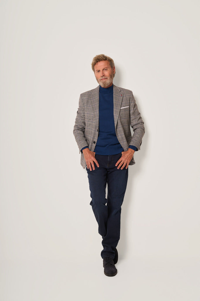 La giacca uomo Principe di Galles grigia è un capo intramontabile che unisce eleganza e versatilità.Realizzata in tessuto misto di alta qualità, garantisce una vestibilità comoda e una linea impeccabile, perfetta per completare look formali o casual chic.Il classico motivo Principe di Galles con sottili linee blu dona raffinatezza e personalità, mentre la chiusura a due bottoni e le tasche a filetto mantengono un’estetica curata e moderna.Ideale sia con camicia e pantalone sartoriale, sia con dolcevita e denim per un outfit più contemporaneo.