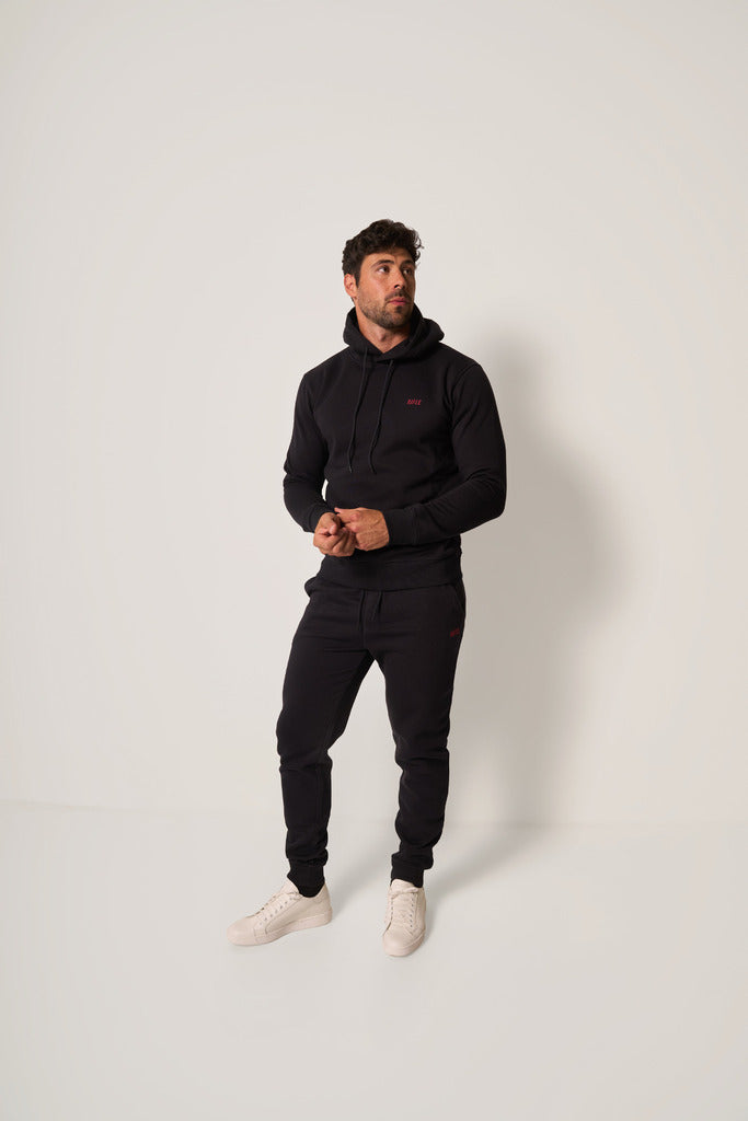 Il design essenziale è arricchito dal logo ricamato a contrasto in rosso, dettaglio distintivo che conferisce carattere al capo. Il fondo gamba con polsino elastico e la vita regolabile con coulisse assicurano una vestibilità sempre perfetta.