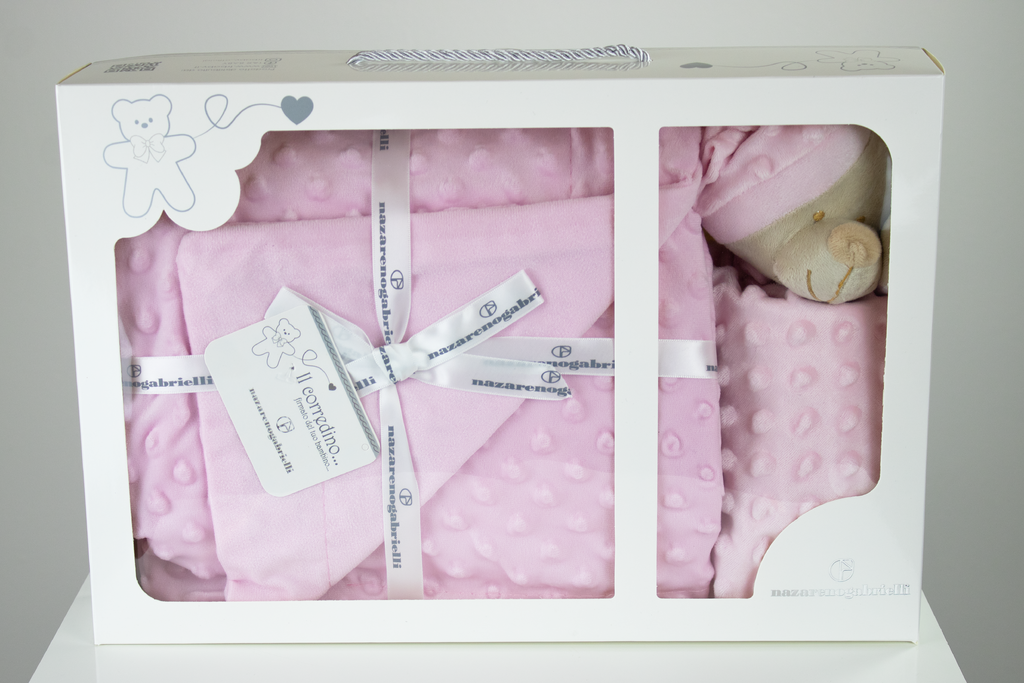 Deliziosa copertina double-face in morbido tessuto bubble, pensata per la culla del tuo bambino, con dimensioni 75x95 cm. Il set include un tenero doudou orsetto coordinato, offre comfort e protezione in ogni stagione. Elegante e pratica, è anche una splendida idea regalo nascita.
