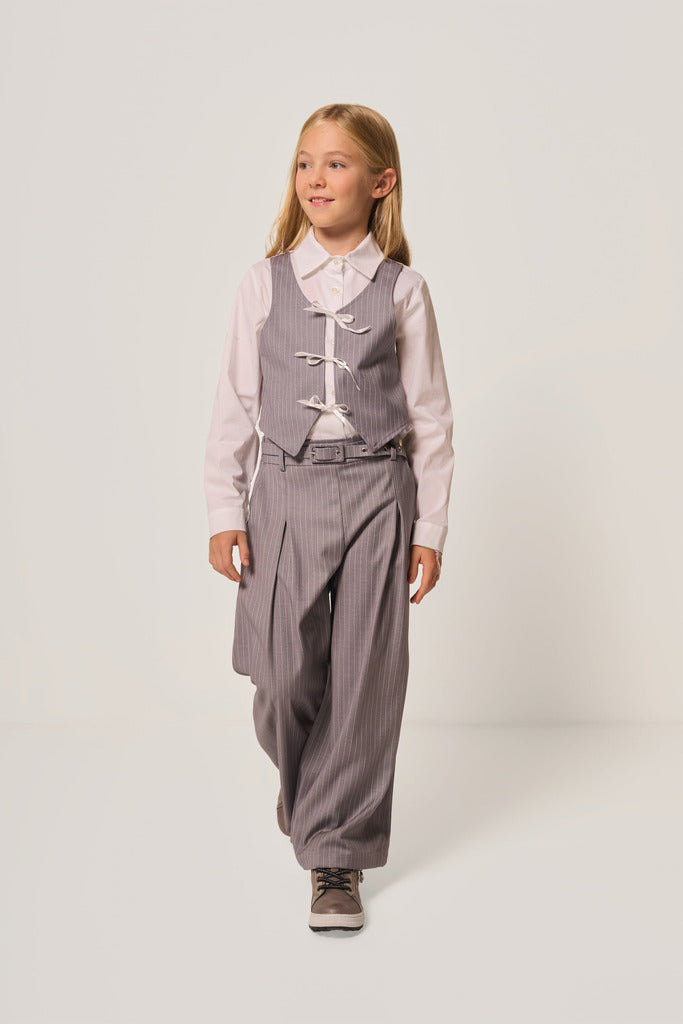 DESCRIZIONE: Pantalone a palazzo gessato.Presenta una linea ampia e confortevole, perfetta per ogni occasione. La vita alta con passanti e cintura coordinata valorizza la figura, mentre le righe sottili verticali slanciano la silhouette. Codice prodotto: 260643