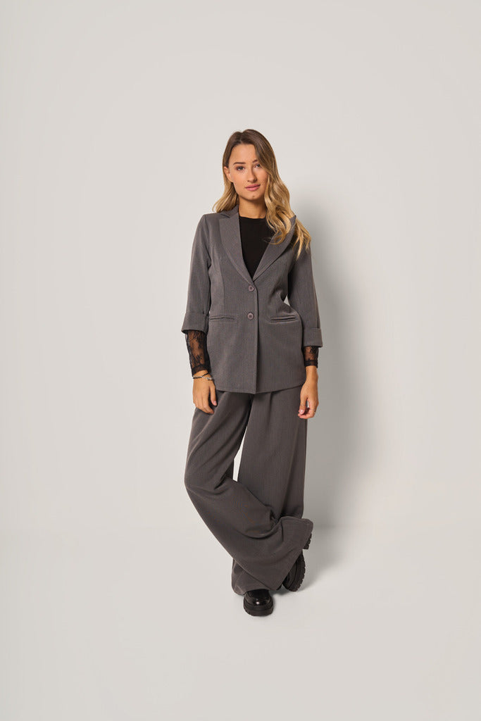DESCRIZIONE: Giacca elegante, con revers classico e chiusura a due bottoni. Il modello presenta maniche lunghe, tasche frontali a filetto e una linea dritta e morbida, perfetta per look formali o casual chic. Codice prodotto: 260674
