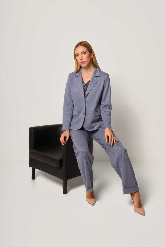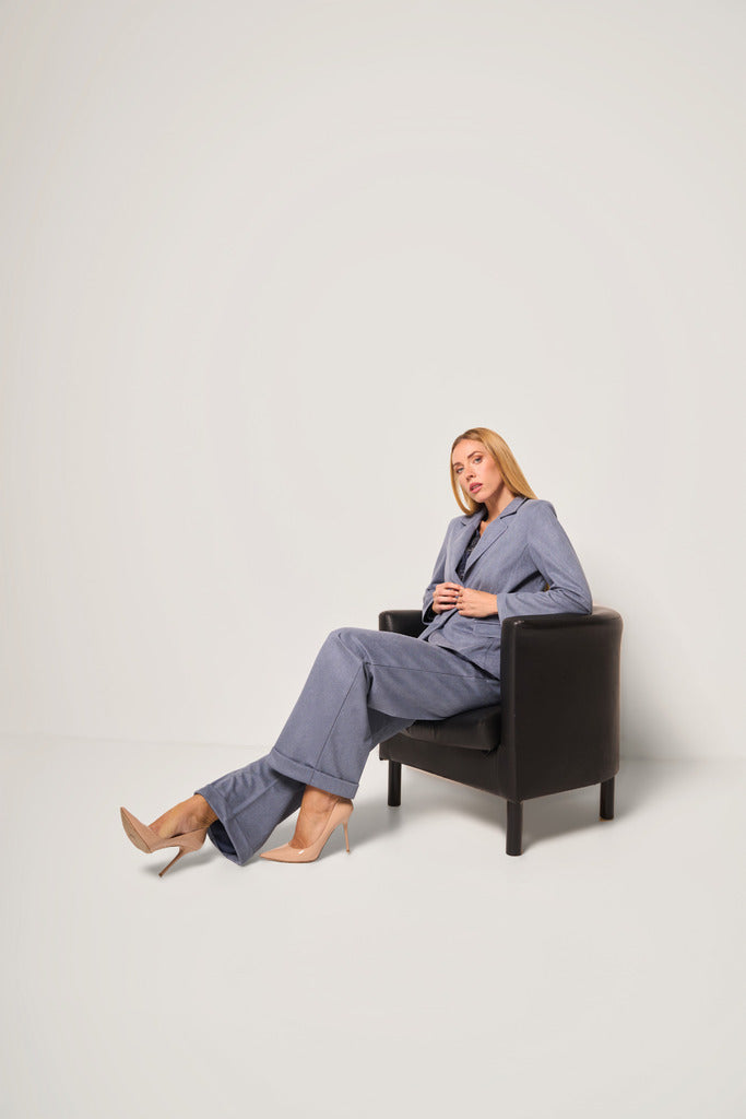 DESCRIZIONE: Pantaloni da donna in tessuto melange, caratterizzati da una linea dritta e morbida. Il modello presenta vita media, tasche laterali e risvolto sul fondo Codice prodotto: 260202
