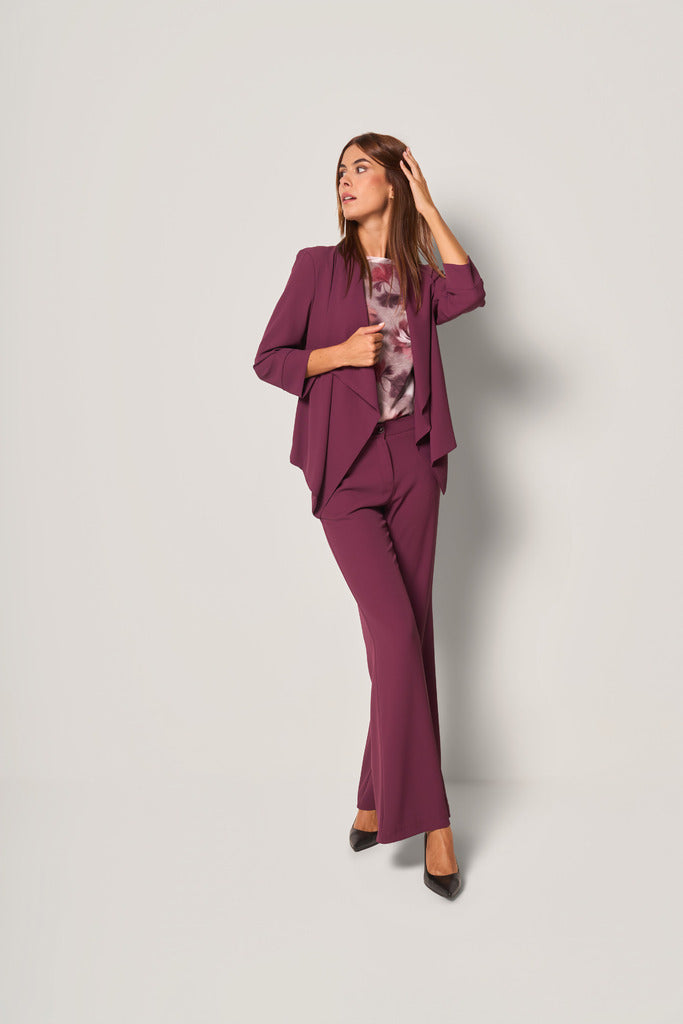 Pantaloni da donna in crêpe fluido, caratterizzati da una linea svasata e slanciata che valorizza la figura. Il modello presenta vita regolare, chiusura con bottone e zip nascosta, e tasche laterali per un tocco pratico e raffinato.