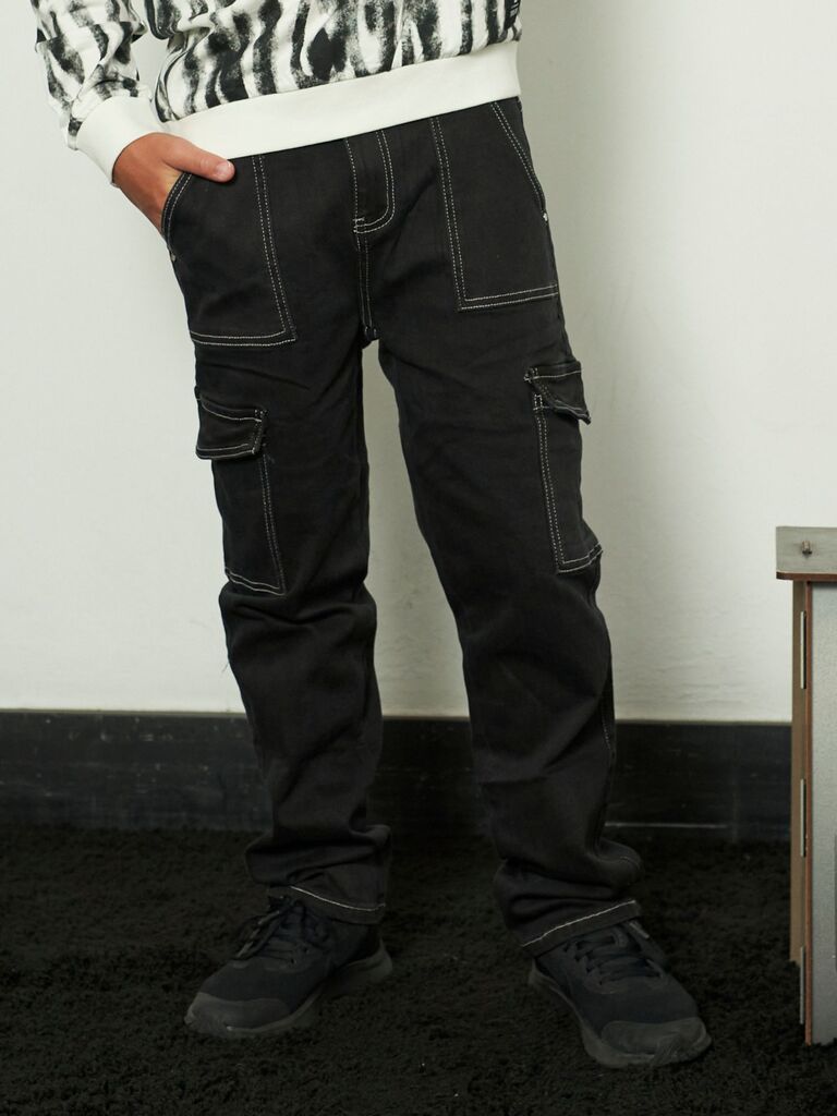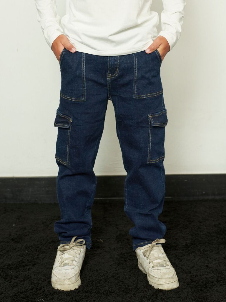 Jeans ampio con tasconi sulle gambe e tasche oblique