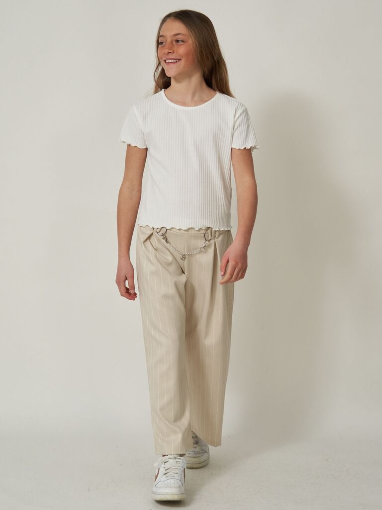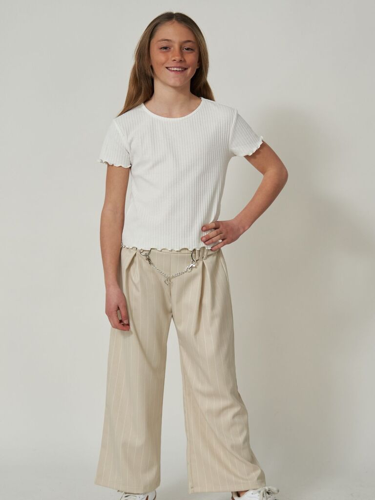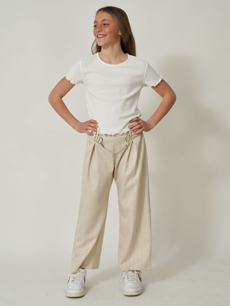 Pantalone gessato con pences e catenina davanti, gamba dritta