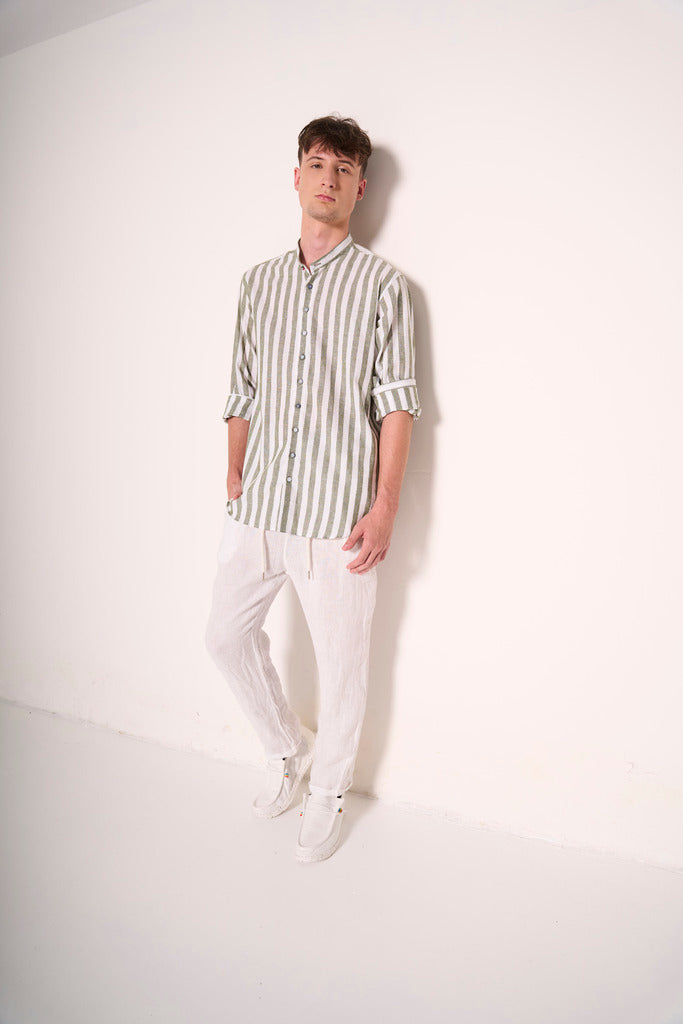 Realizzati in lino morbido e traspirante, questi pantaloni sono pensati per chi ama un'eleganza rilassata. Il design con coulisse regolabile e tasche laterali li rende versatili e funzionali, ideali per look estivi urbani o vacanzieri. Facili da abbinare, garantiscono freschezza e libertà di movimento con classe.
