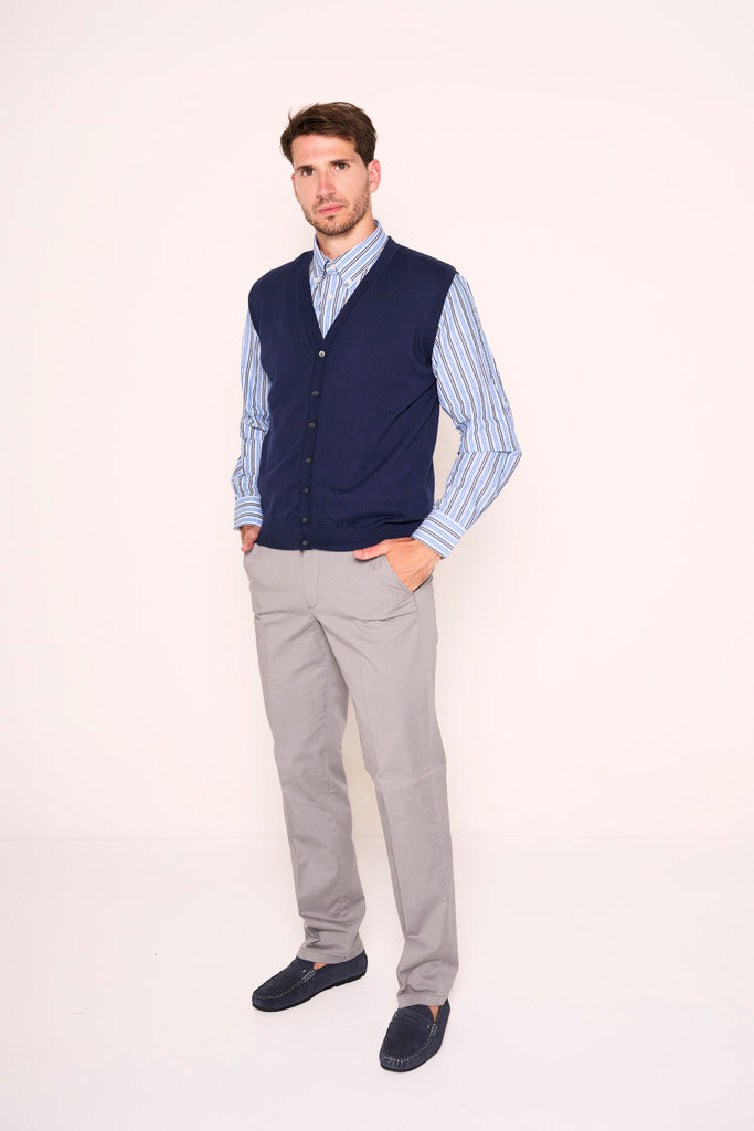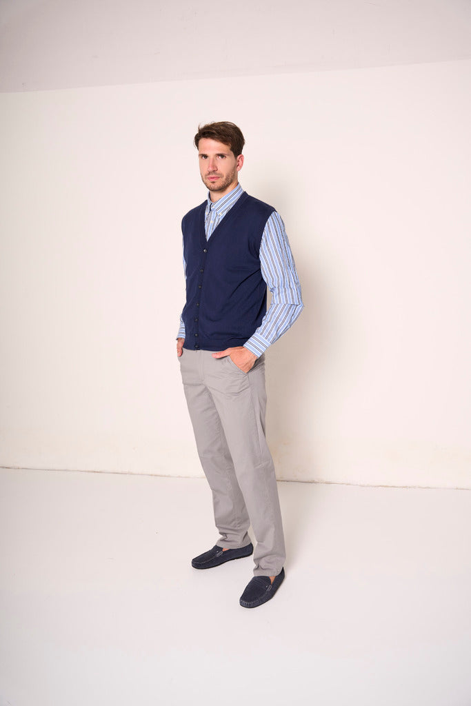 Linee pulite e versatilità quotidiana si incontrano in questi pantaloni classici. Il taglio dritto e la vestibilità regolare li rendono adatti a ogni silhouette, mentre la struttura senza pences conferisce un look ordinato e minimal. Dotati di tasche americane anteriori e tasche posteriori a filetto con bottone, offrono funzionalità senza rinunciare allo stile. La chiusura con zip e bottone garantisce praticità, e il tessuto in cotone leggermente elasticizzato assicura comfort e libertà di movimento. Ideali per l’ufficio, un aperitivo serale o qualsiasi occasione in cui serve un tocco di sobria eleganza.
