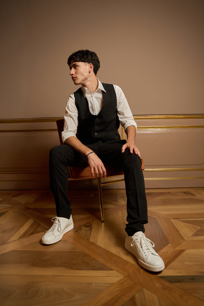 Pantalone uomo elegante dritto con chiusura zip e bottone.