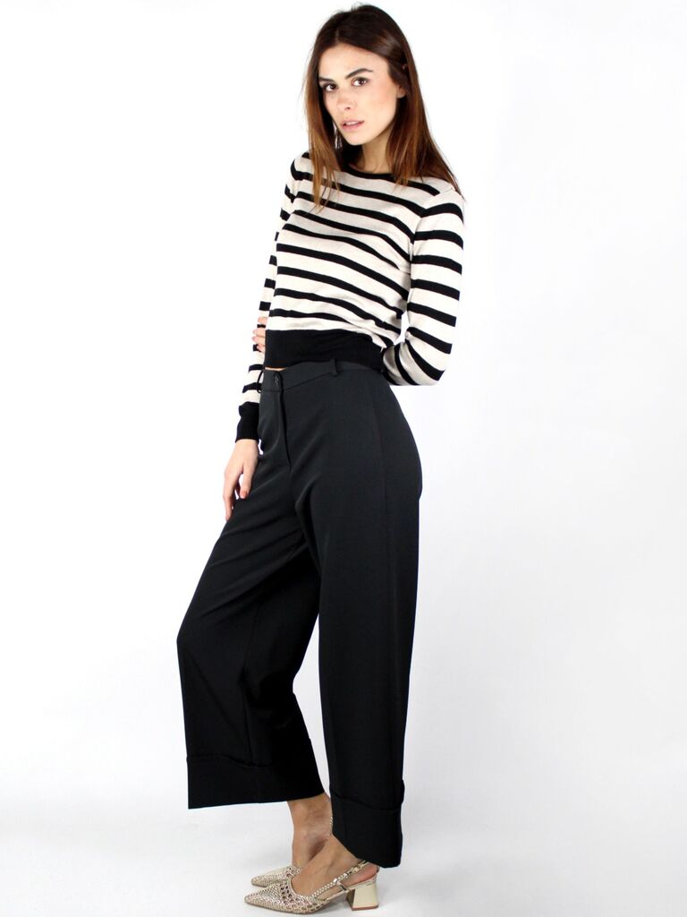 • Carica l'immagine nel visualizzatore di Gallery, Pantalone a palazzo con risvolto