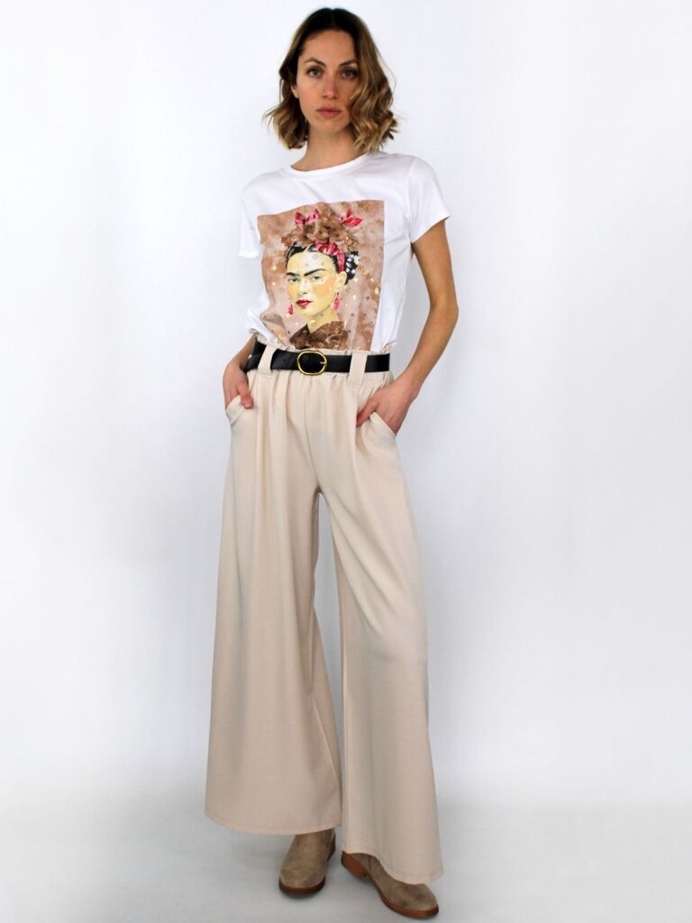 Pantalone ampio elasticizzato a gamba larga, con tasche oblique e cintura