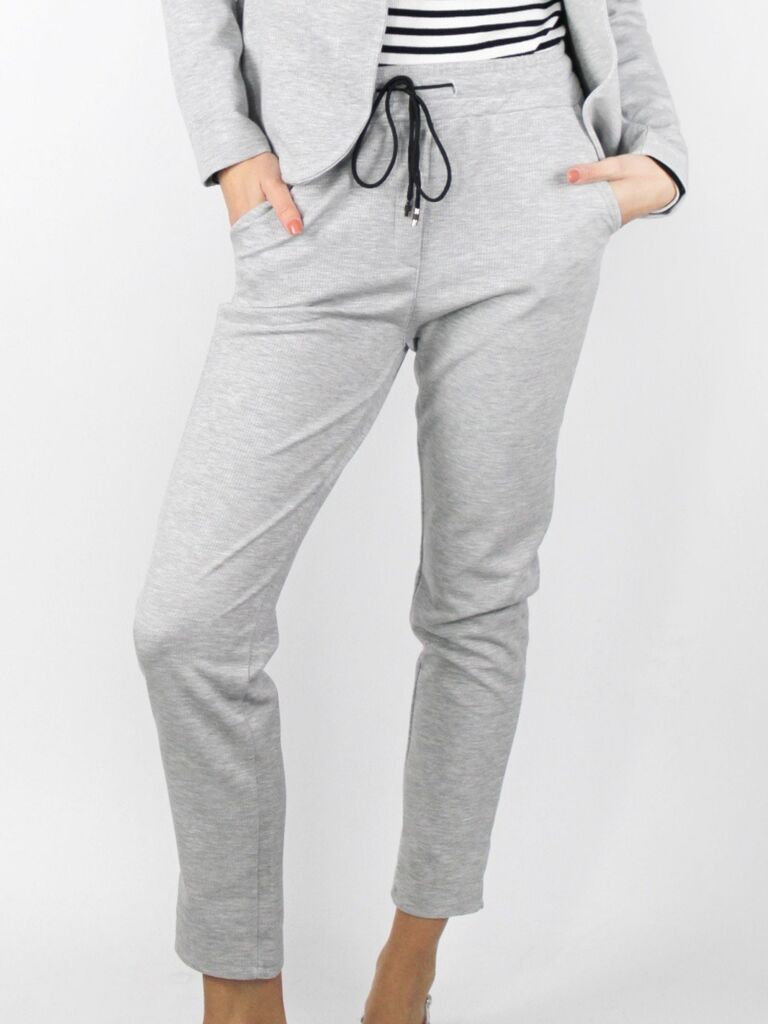 Pantalone con culisse in vita e tasche oblique, tessuto rigatino