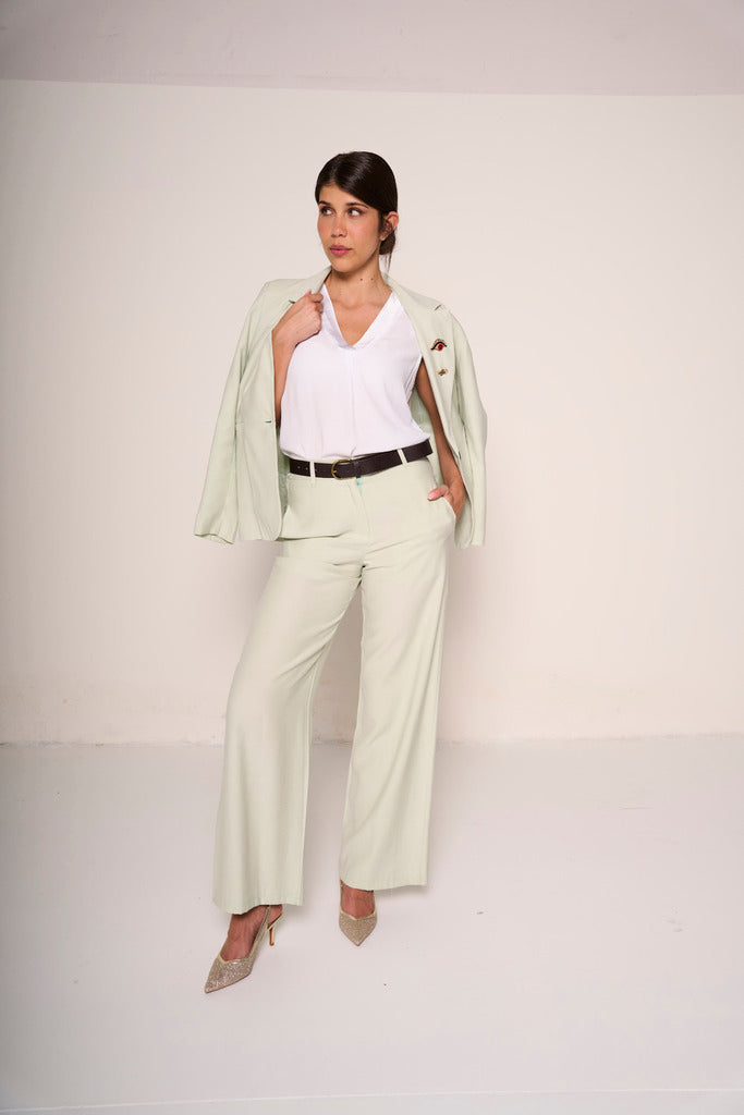 Linee ampie, silhouette slanciata e vibrazioni sofisticate: questo pantalone palazzo verdone è l’alleato perfetto per un look chic e senza sforzi. La vita alta valorizza le forme, mentre il taglio dritto regala equilibrio e movimento. Perfetto con crop top, bluse fluide o con la giacca abbinata per un completo d’impatto dal gusto moderno.