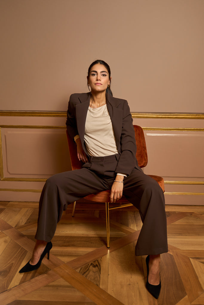 Pantalone a vita alta caratterizzato da linea ampia e gamba dritta con tasche oblique. La pince frontale dona struttura e raffinatezza al capo. La vestibilità confortevole unisce eleganza e praticità, perfetta anche per outfit più contemporanei.