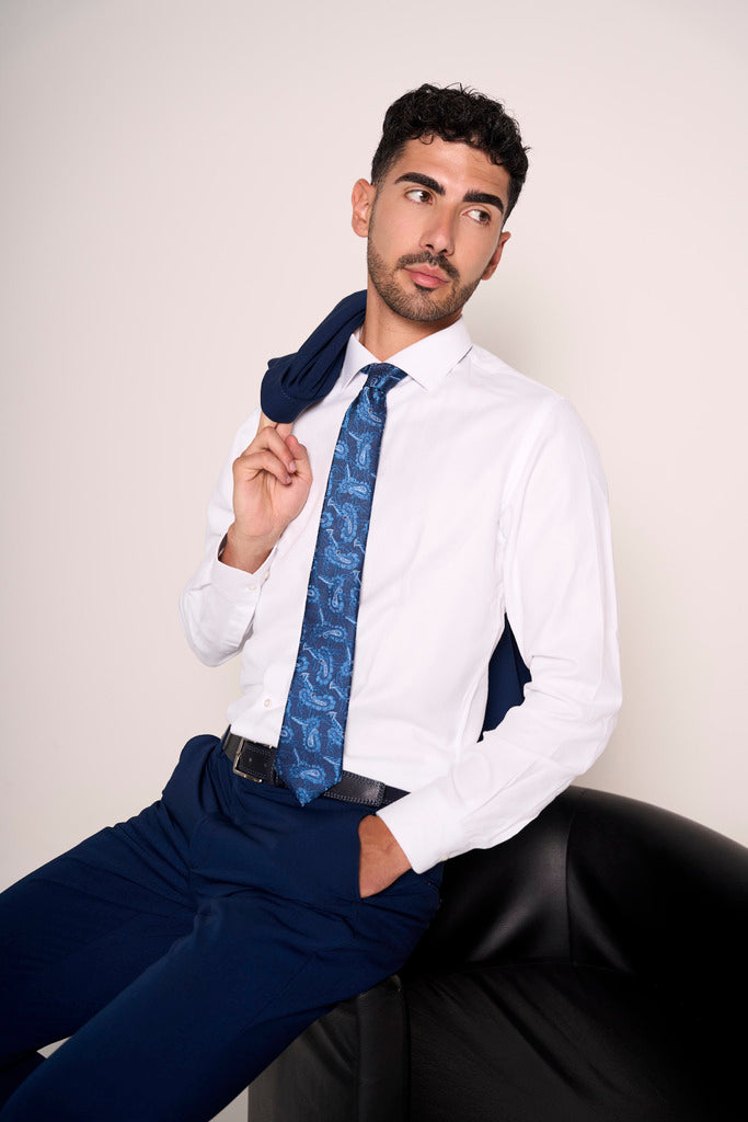 Linee pulite, stile intramontabile. Questa camicia da uomo è il perfetto equilibrio tra eleganza classica e versatilità contemporanea. Realizzata in tessuto leggero e traspirante, presenta un raffinato collo all'italiana che dona un tocco di sobria sofisticatezza.Disponibile nei colori bianco e celeste, è ideale per occasioni formali, cerimonie o giornate lavorative in cui desideri distinguerti con stile. La chiusura a bottoni e la vestibilità regolare la rendono comoda da indossare tutto il giorno, con o senza cravatta. Abbinala a un pantalone sartoriale o a un jeans per un look curato ma naturale. Una camicia che non può mancare nel guardaroba di ogni uomo.