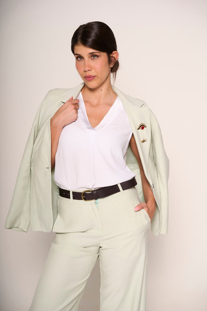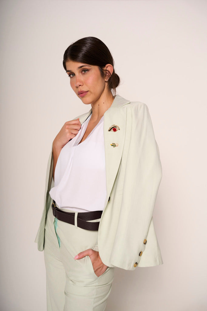 Questa giacca verdone dal taglio morbido è la quintessenza della raffinatezza rilassata. Linee pulite, fit fluido e una palette neutra che si abbina a tutto: un capo versatile da indossare con disinvoltura in qualsiasi occasione, dal meeting informale all'aperitivo elegante. Provala con il pantalone coordinato per un total look che sprigiona charme contemporaneo.