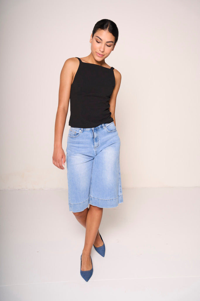 Riscopri la forza della semplicità con la nostra canotta con spalline sottili. Con una linea essenziale, spalline sottili e taglio aderente, questa canottiera nera è il passe-partout perfetto per ogni stagione. Indossala da sola per un look estivo chic o sotto blazer e giacche per un outfit stratificato. Il tessuto morbido e leggero accarezza la pelle, donando comfort e femminilità in ogni occasione. Un capo basico… con un tocco irresistibile.