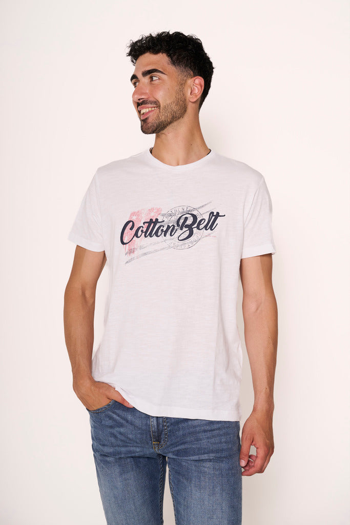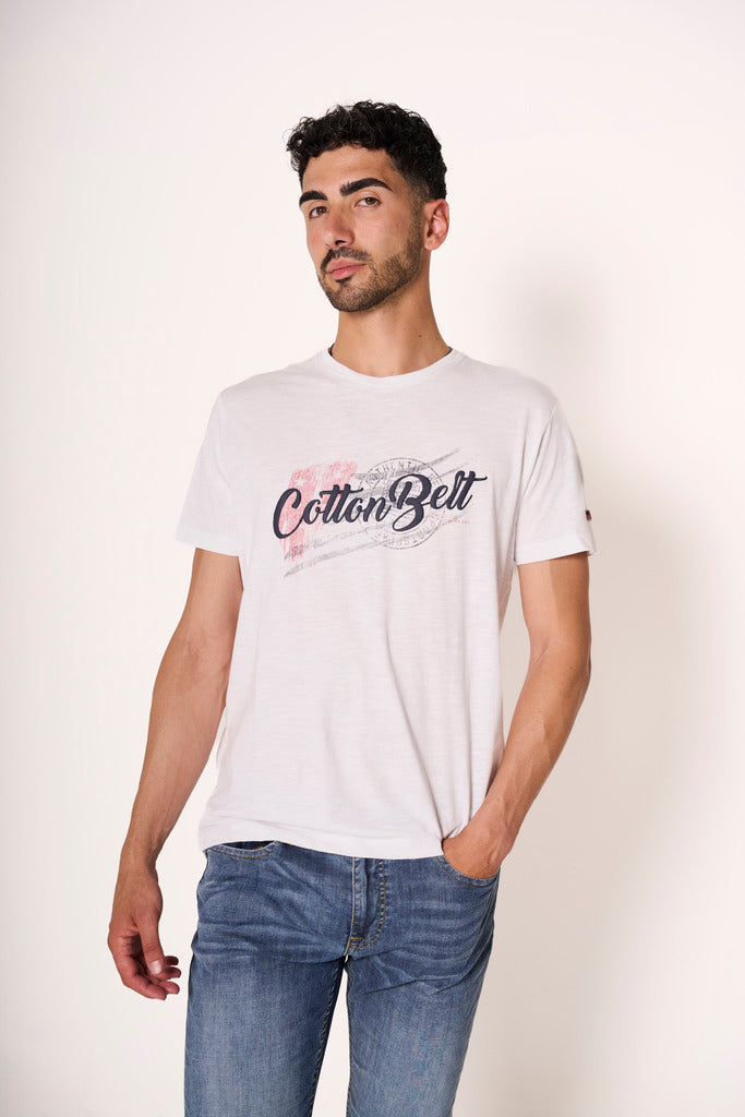 Rinnova il tuo stile casual con questa t-shirt firmata "Cotton Belt", disponibile nei classici colori bianco e azzurro. Realizzata in morbido cotone, combina comfort e personalità grazie alla stampa frontale gommata con logo che cattura lo sguardo e alle patch applicate sulle maniche che donano un tocco distintivo. Un capo versatile e dinamico, perfetto da abbinare a jeans o bermuda per un look disinvolto ma curato.