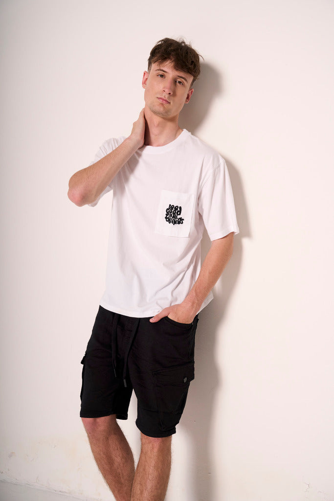 DESCRIZIONE: Minimal ma con stile: questa t-shirt bianca è arricchita da un taschino con stampa “Good Vibes” in stile graffiti. Realizzata in cotone traspirante, ha una vestibilità comoda e un tocco grafico originale per i tuoi outfit casual.Codice prodotto: 259720
