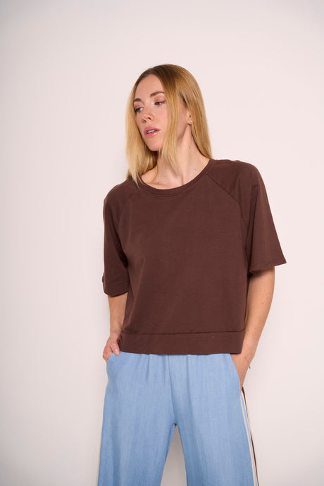 T-shirt boxy marrone in cotone con taglio sartorialeT-shirt boxy marrone in cotone con taglio sartorialeNo reviews