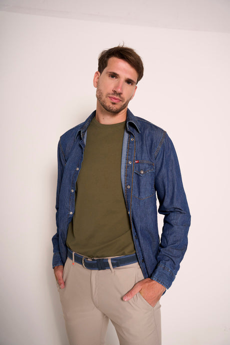 Camicia sportiva in denim con bottoni a pressione e carréCamicia sportiva in denim con bottoni a pressione e carréNo reviews