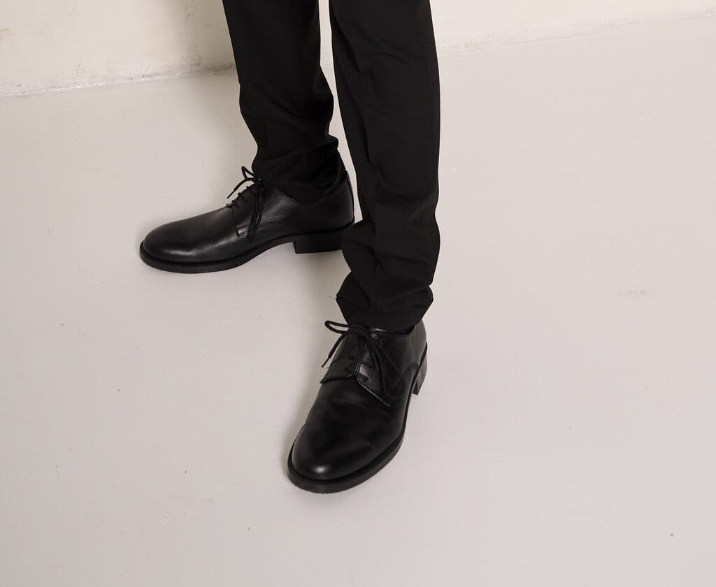Raffinatezza e versatilità si incontrano in queste scarpe stringate nere da uomo in stile Derby. Realizzate in pelle liscia di alta qualità, sono perfette per completare outfit formali, da ufficio o da cerimonia. La suola in gomma antiscivolo garantisce comfort e stabilità per tutta la giornata, mentre la linea pulita e senza tempo le rende un must-have del guardaroba maschile. Indossale con un completo elegante o con pantaloni chino per un look curato e professionale.Codice prodotto: 256219