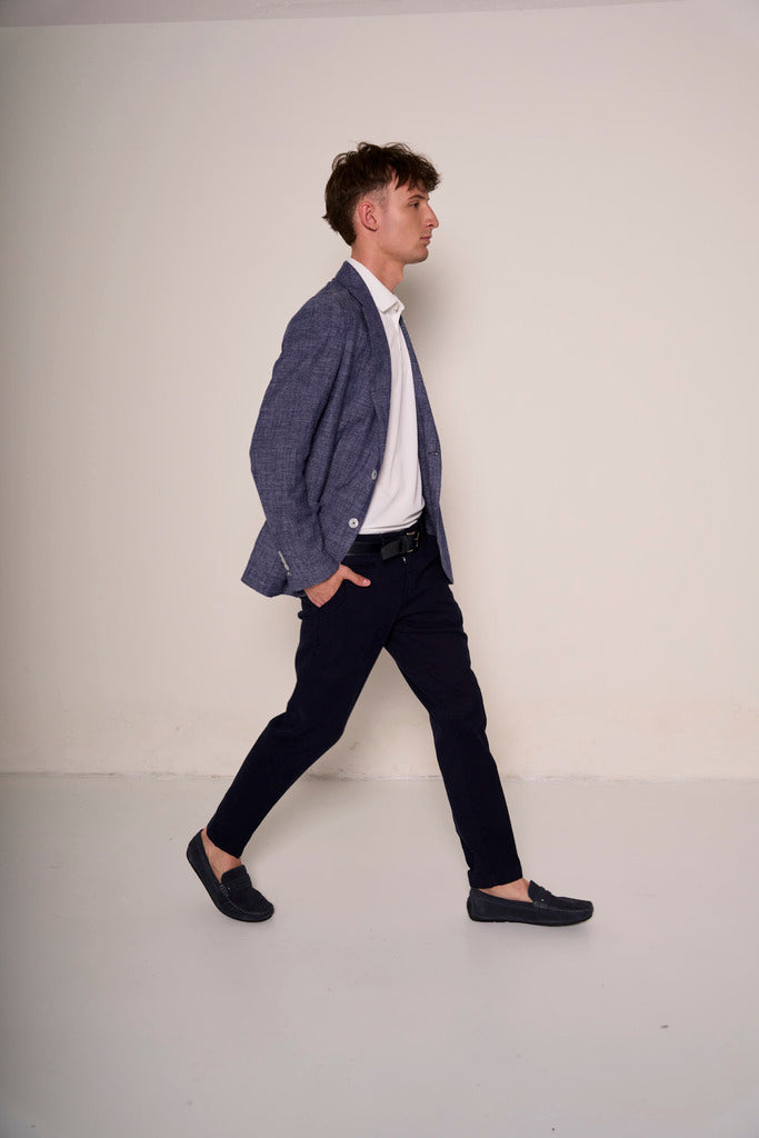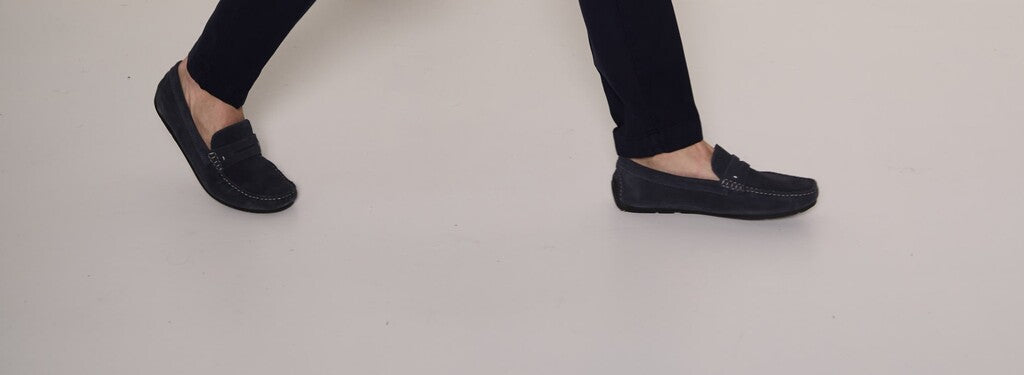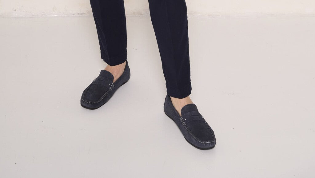 Questi mocassini in camoscio blu scuro uniscono eleganza e comfort in un design senza tempo. Leggeri e flessibili, sono perfetti per la stagione calda e ideali sia per outfit da giorno che per serate informali. Il dettaglio cucitura a vista e la suola antiscivolo completano un look sobrio e versatile. Perfetti da indossare senza calzini per uno stile smart estivo.