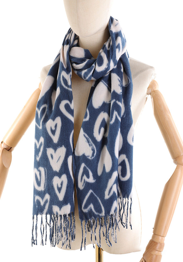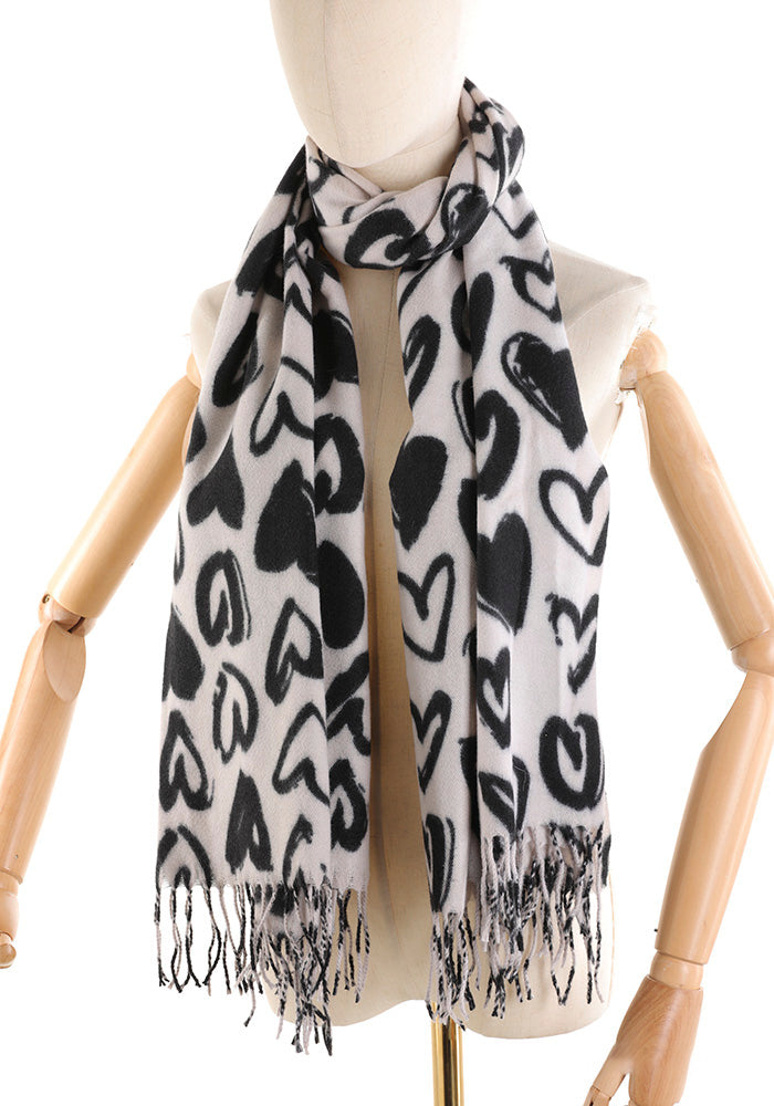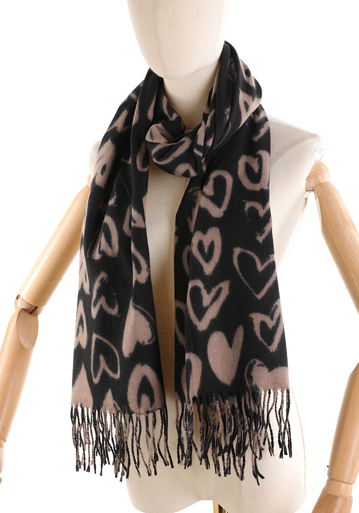 Sciarpa Donna – Fantasia Cuori, Modello Morbido con Frange