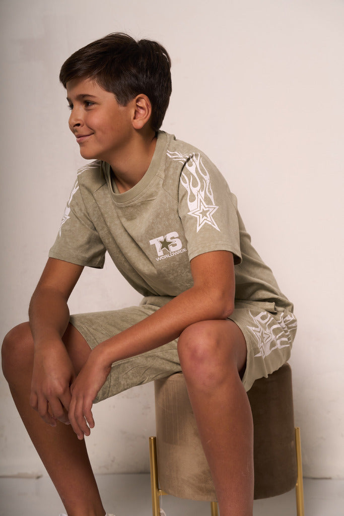 Completo bambino monocolore con stampe.