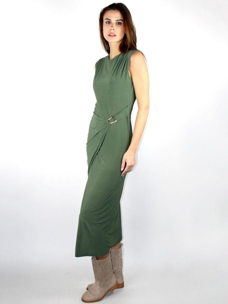 Abito midi con spacco frontale e accessorio dorato sul fianco