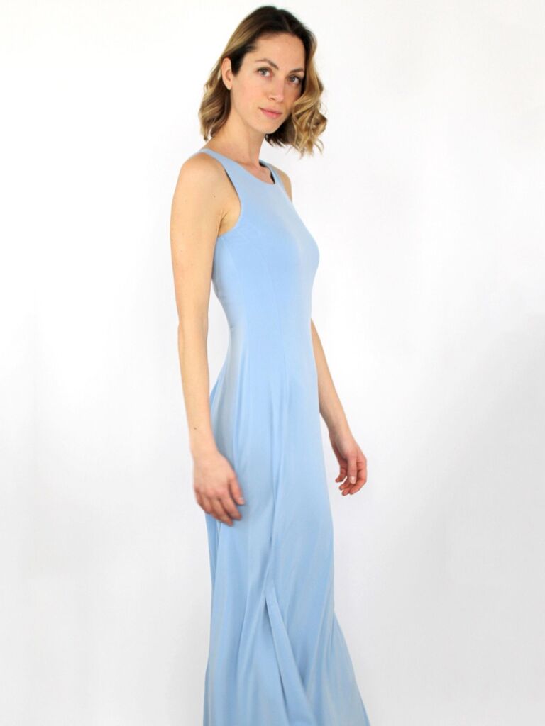 Abito lungo girocollo e smanicato, in tinta unita