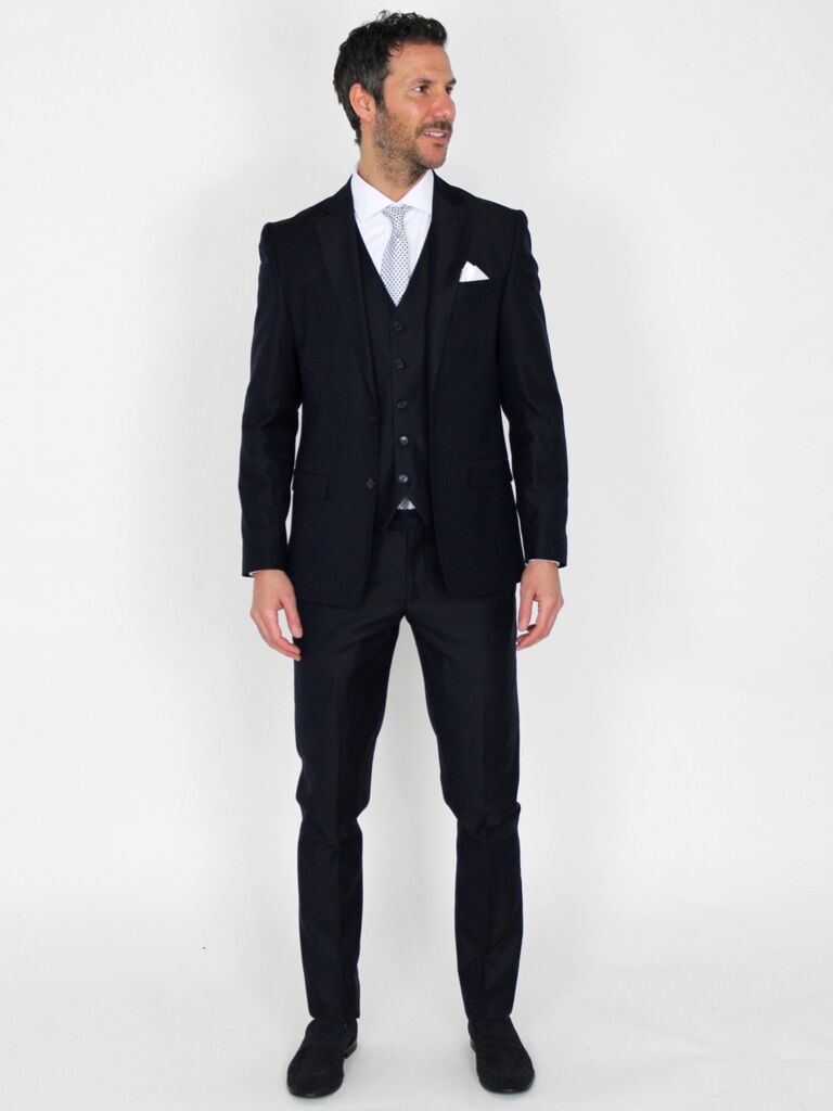 Abito 3 pezzi con giacca, gilet e pantalone.