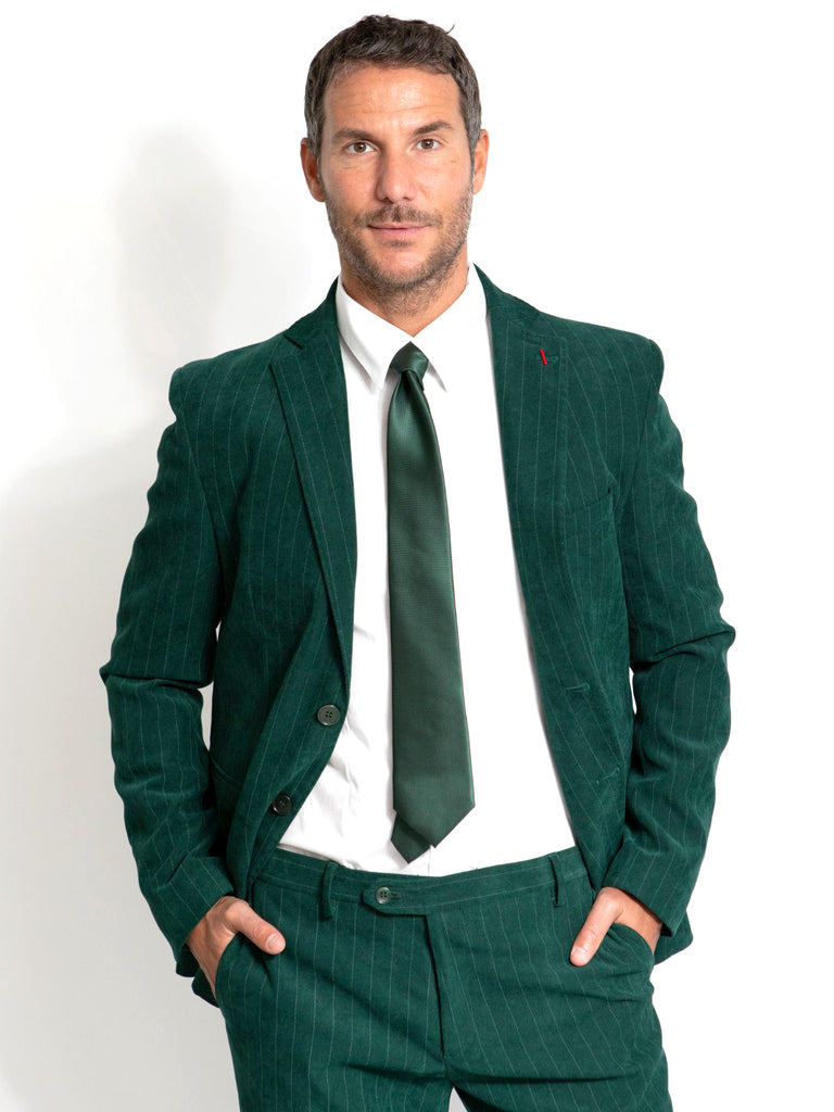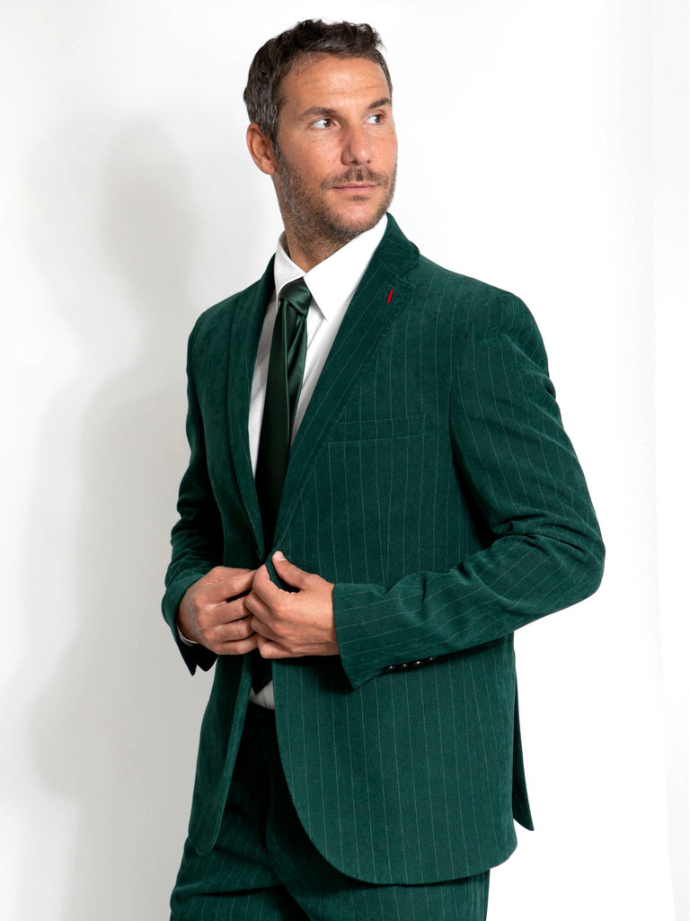 Abito gessato 2 pezzi composto da giacca e pantalone con chiusura bottone a listino e zip