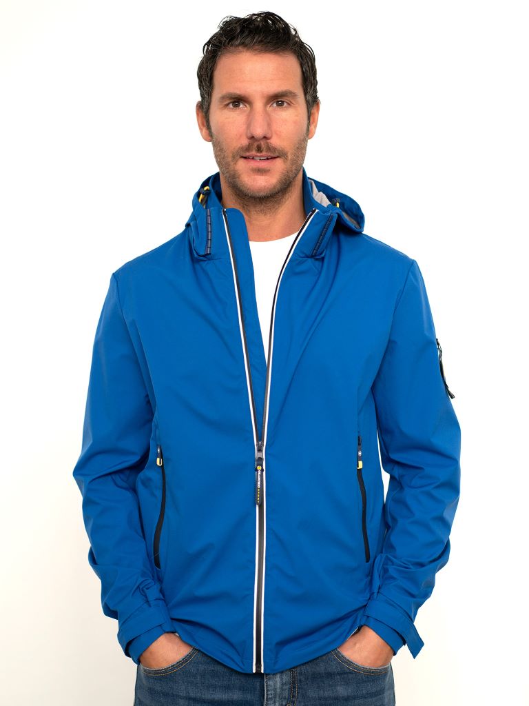 DESCRIZIONE Giacca in tessuto impermeabile con inserti interi in felpa. Cappuccio rimovibile con zip e tasche verticali con chiusura a cerniera Composizione: 98% poliestere, 2% elastan Codice prodotto: 242762